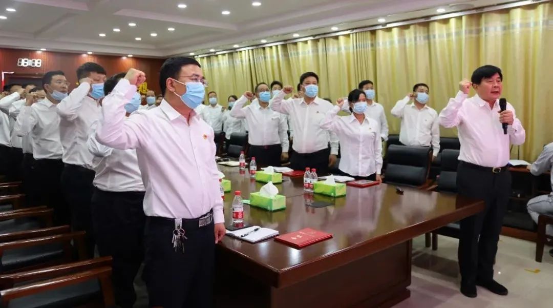 會(huì)議開始,首先全體起立奏唱《中華人民共和國(guó)國(guó)歌》,隨后由集團(tuán)黨委副書記李天義宣讀《中共登封市嵩基集團(tuán)有限公司委員會(huì)關(guān)于表彰先進(jìn)基層黨組織及優(yōu)秀共產(chǎn)黨員的決定》,并對(duì)先進(jìn)基層黨組織、優(yōu)秀共產(chǎn)黨員進(jìn)行現(xiàn)場(chǎng)表彰,之后由黨委書記屈松記就非公黨委黨建工作發(fā)表重要講話,并帶領(lǐng)全體黨員重溫入黨誓詞。