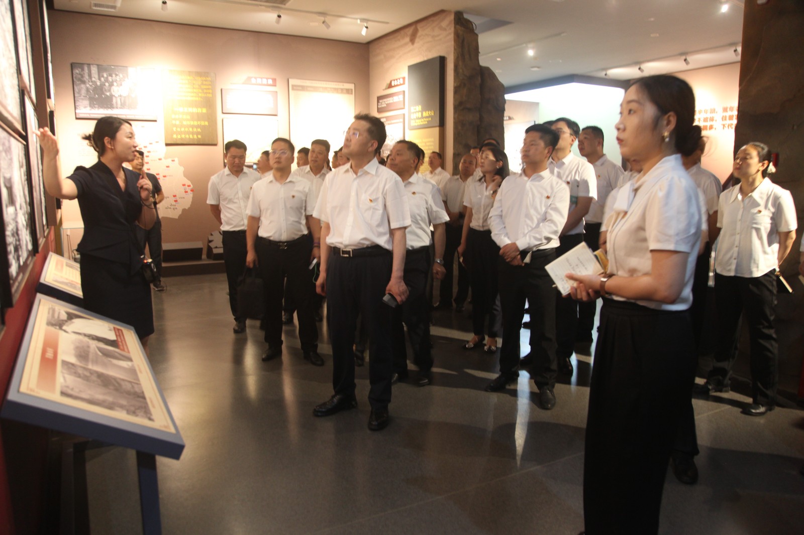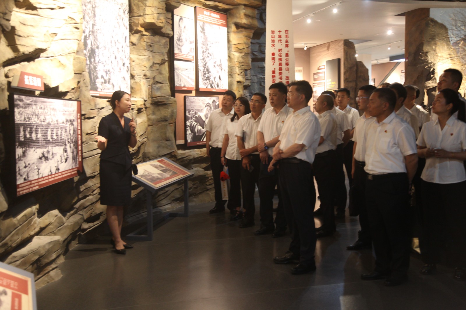隨后,黨員代表一行來到輝縣人民干得好展覽館參觀。該館以“不忘初心,牢記使命”為主題,通過生動的青銅浮雕、珍貴的歷史圖片和詳實的文字記載,全方位、立體化地再現(xiàn)了輝縣人民自力更生、艱苦奮斗、戰(zhàn)天斗地的輝煌歷程和偉大成就。深刻感人的“輝縣精神”給全體參觀人員帶來了強烈的思想震撼和精神洗禮,進一步堅定了大家傳承紅色基因、賡續(xù)奮斗血脈、立足崗位建功立業(yè)的信念。