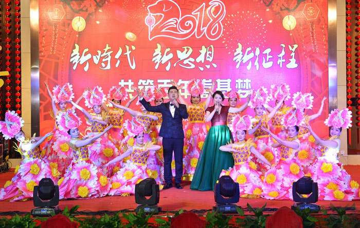 晚會在開場舞《萬喜中國喜》歡樂祥和的音樂中晚會拉開了序幕??偨?jīng)理李天義進(jìn)行了熱情洋溢的新年賀詞,并攜同公司領(lǐng)導(dǎo)送上了節(jié)日問候和新年祝福。本次晚會集現(xiàn)代氣息、傳統(tǒng)風(fēng)格于一身,形式豐富,歌曲、戲曲、舞蹈、相聲等異彩紛呈,不拘一格,特別是中場互動的選號搖獎和支付寶搶紅包環(huán)節(jié),更是把晚會推向了高潮。經(jīng)過搖獎和兩輪搶紅包活動,幸運員工在欣賞精彩節(jié)目的同時,獲得意外驚喜,精彩紛呈的節(jié)目輪番上演,演員們的出色表演博得了臺下觀眾的陣陣掌聲。